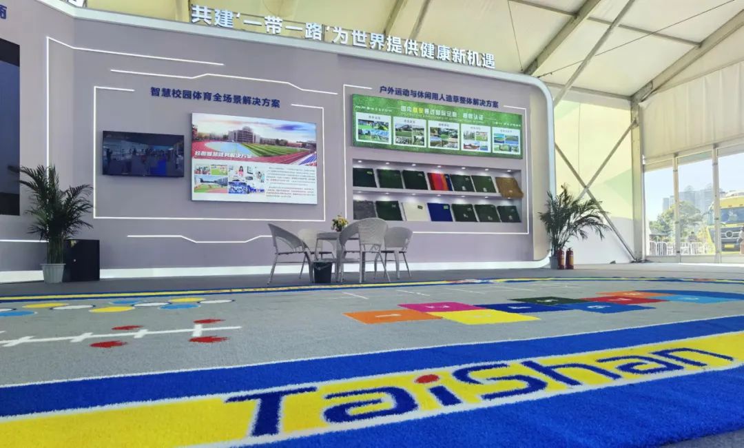 世俱杯官网体育携户外运动与休闲人造草整体解决方案亮相会场。作为国内首家通过足联、曲联双认证的企业可根据不同用户的户外运动需求,生产多种类型的户外运动草坪。