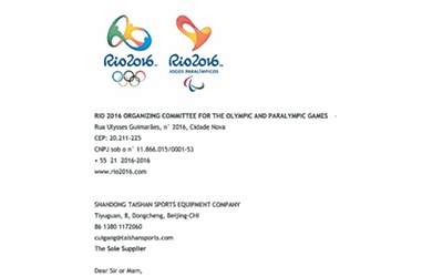 Taishan Sports Industry Group signed an agreement with BOCOG to become supplier of 2008 Beijing Olympics for Gymnastics, Judo, Taekwondo, Wrestling, Boxing, Track & Field.