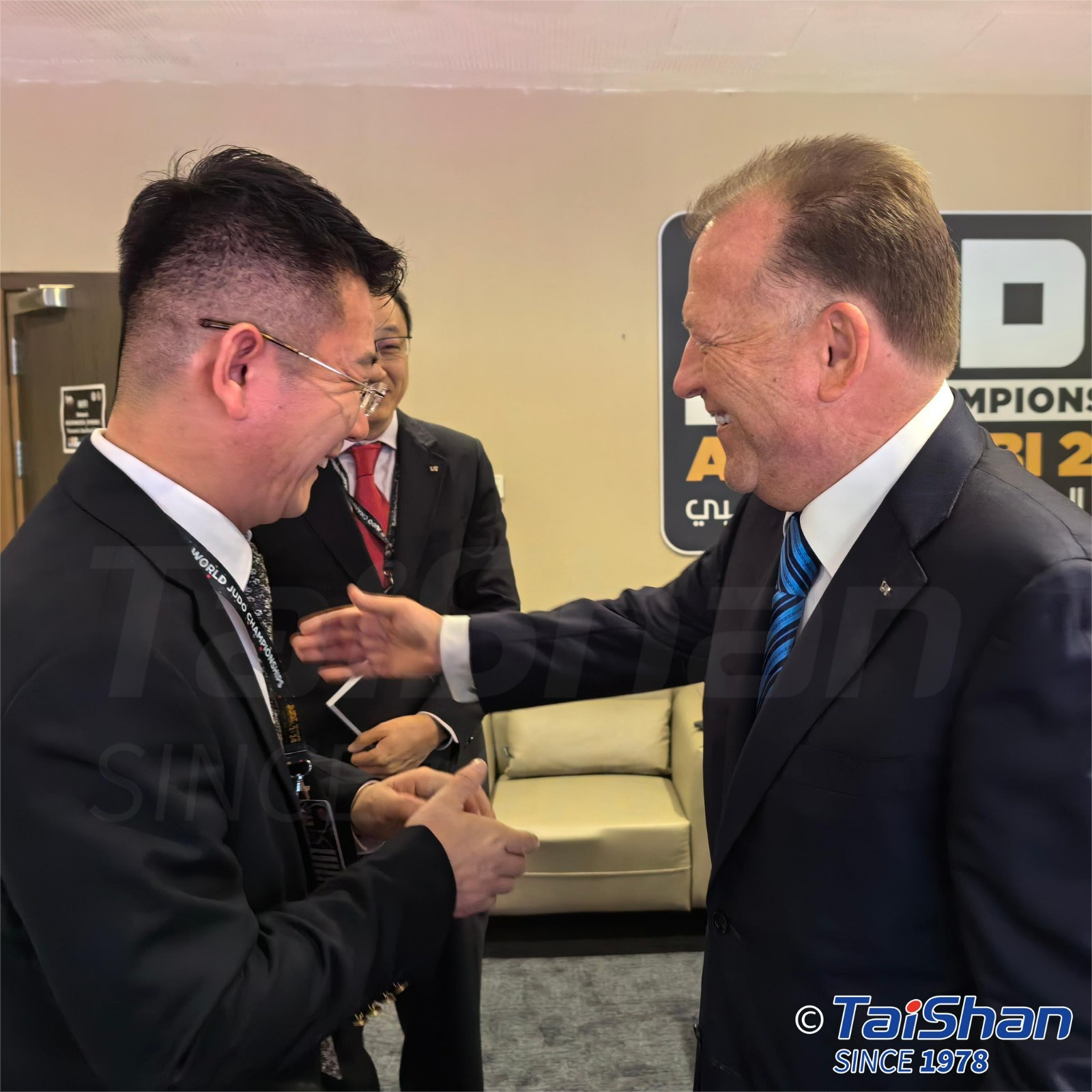 Mr. Bian Qingfeng, Chairman of Taishan Sports, was honored to participate in this prestigious event. He engaged in insightful discussions and captured memorable moments with fellow attendees. Mr. Bian also had productive exchanges with esteemed guests including Mr. Vizer, President of the International Judo Federation, and the President of the European Judo Union, fostering innovation and development in judo sports. Proud to contribute to the advancement of judo athleticism worldwide!