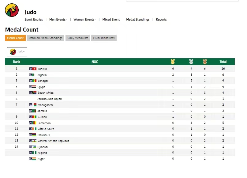 △ 非洲运动会柔道赛事奖牌榜