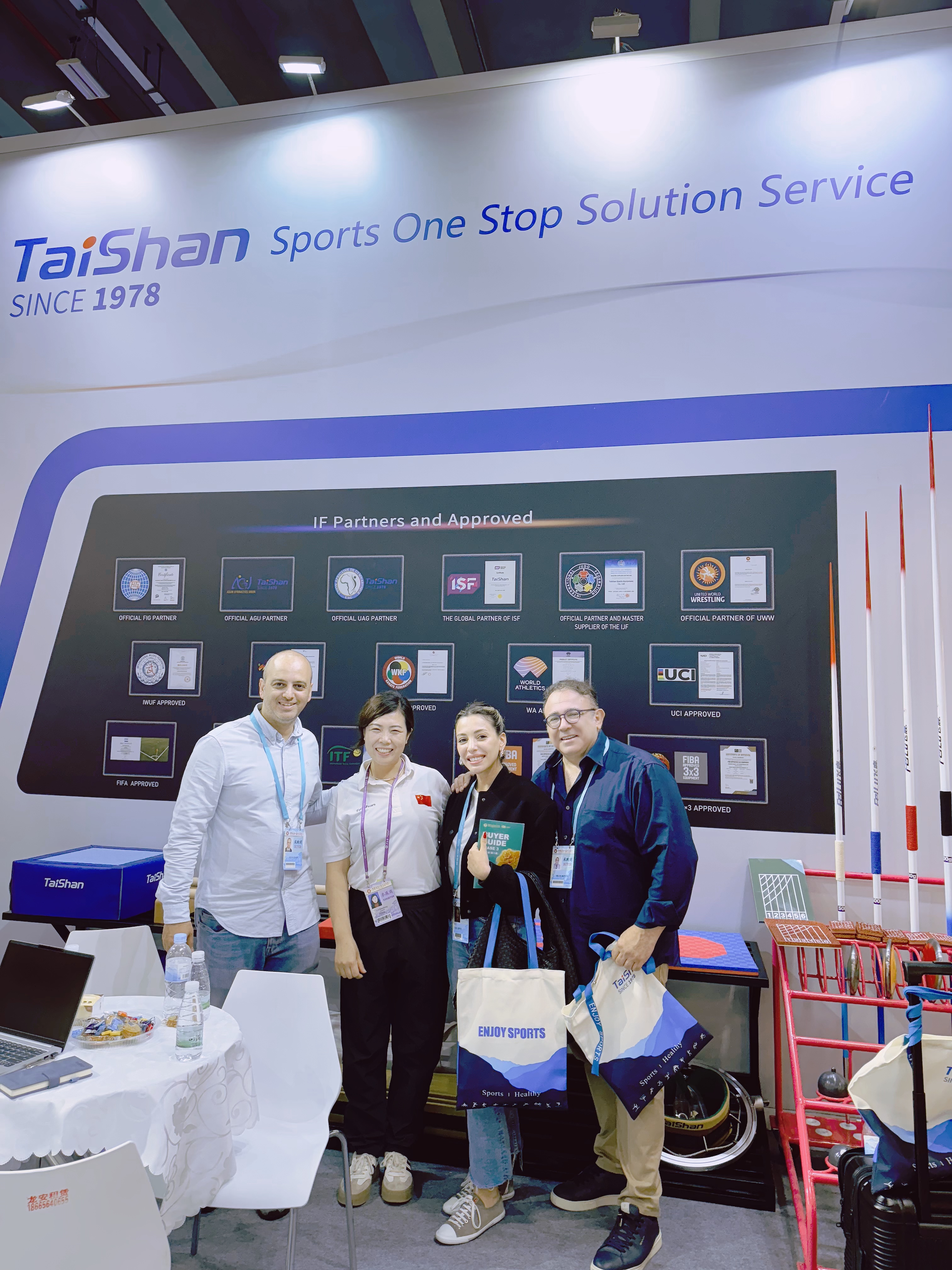 世俱杯官网体育提供的竞技体育器材产品种类齐全、质感细腻、质量优良,碳纤维跳马、摔跤垫、新型武术场地、空手道垫、跆拳道拼接垫、拳击护头(手套)、柔道服等20余种体育器材产品,吸引了众多观展商的目光,收到了良好的参展效果。