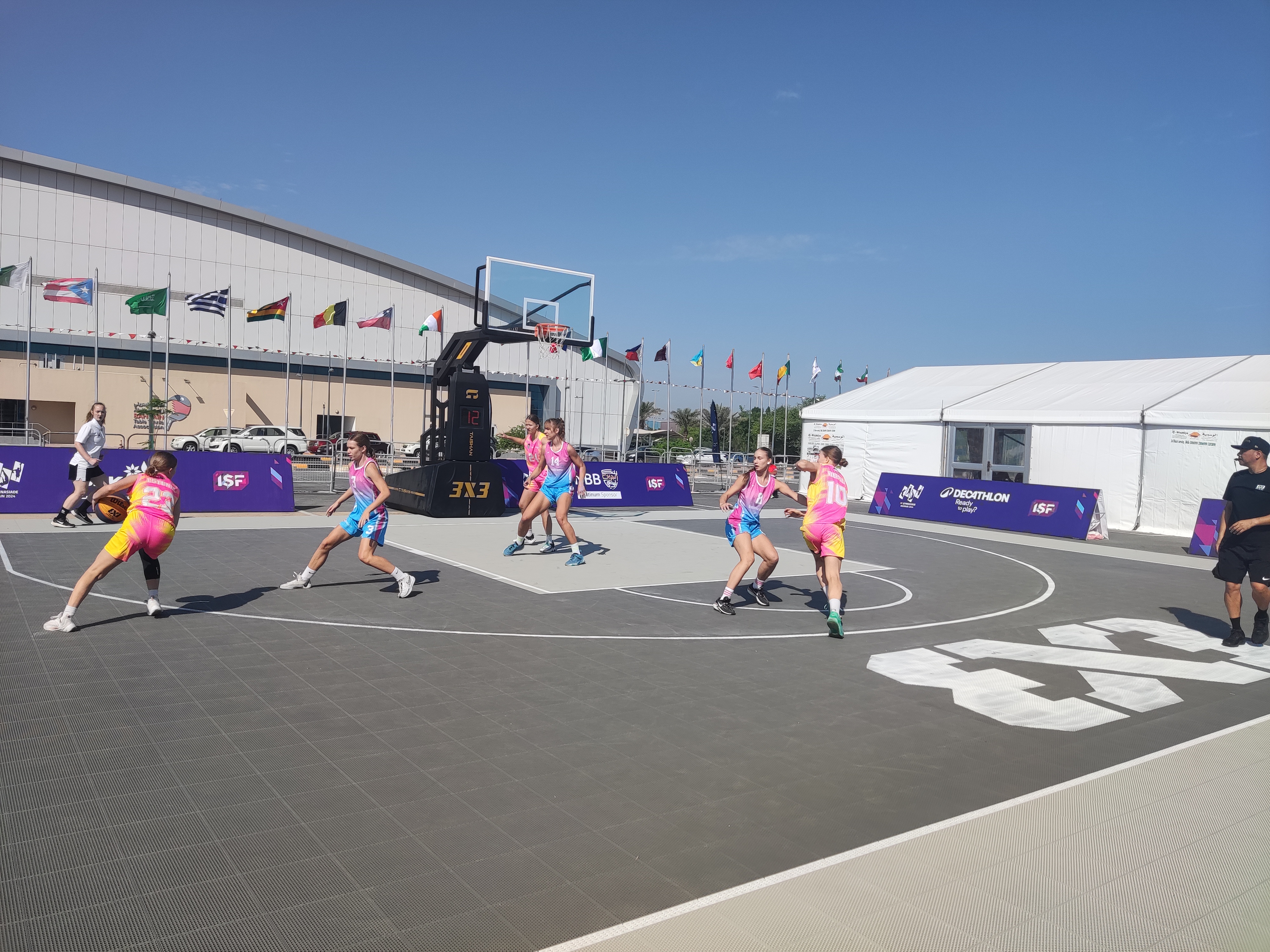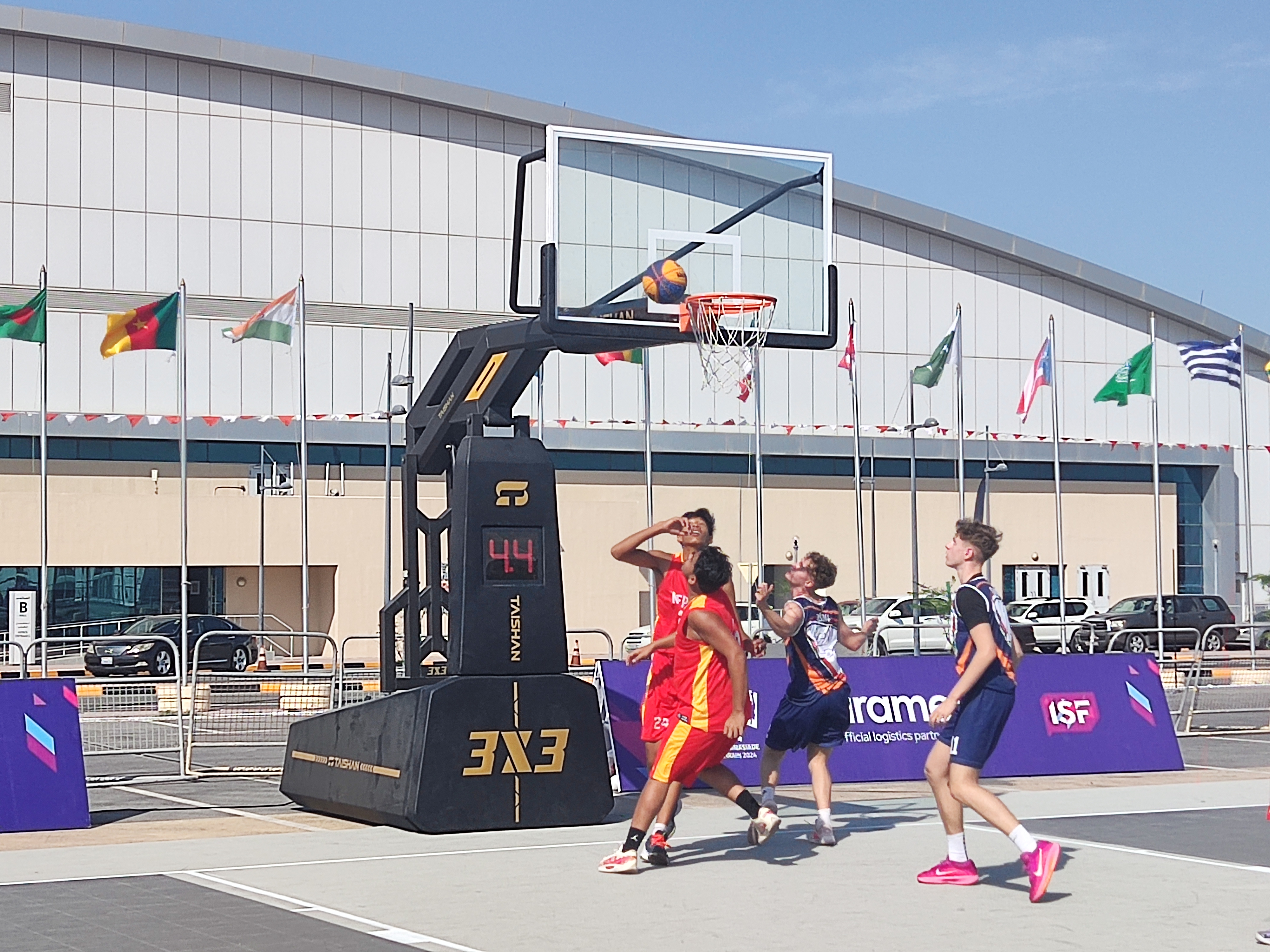 激烈角逐|世俱杯官网体育智能篮球架亮相巴林中夏会赛场