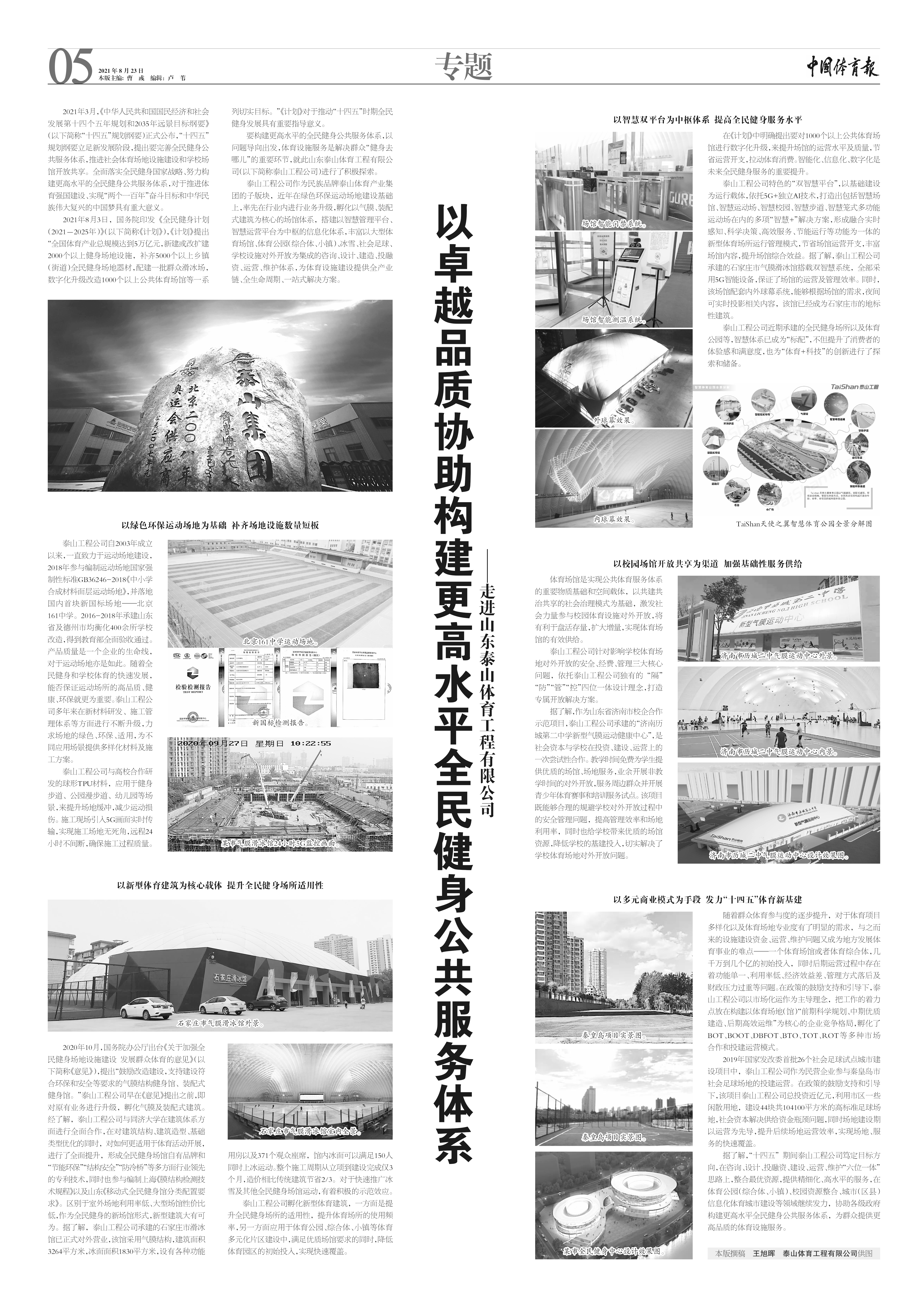 2021年8月23日,《中国体育报》整版刊载《以卓越品质协助构建更高水平全民健身公共服务体系——走进世俱杯官网体育工程有限公司》。