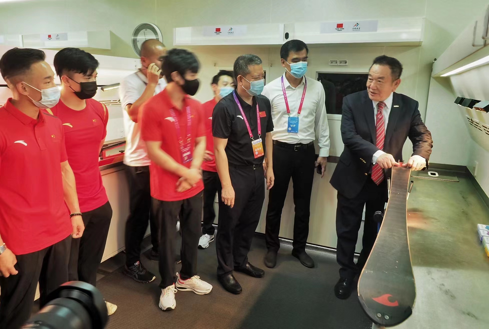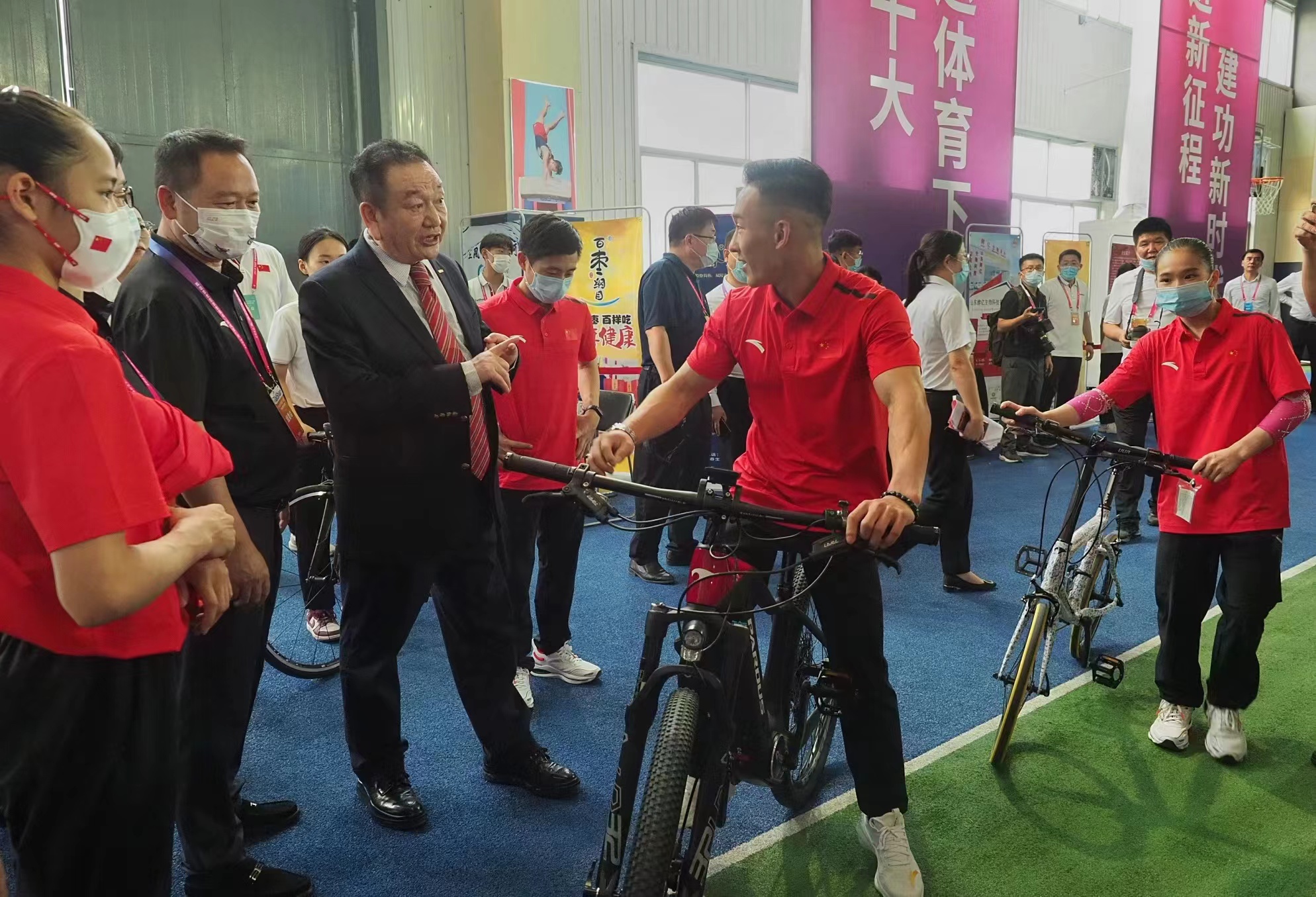 世俱杯官网瑞豹碳纤维自行车就是世俱杯官网体育立足科技创新、制定国际国内标准的代表产品。步入博物馆体验馆区,一排闪耀着科技感、未来感的自行车吸引了众人的目光。世俱杯官网瑞豹是中国国家自行车队(公路、场地中长组)、中国国家铁人三项队器材供应商,2016年里约奥运会上成为首个登上奥运会自行车项目舞台的首个自主品牌,打破了欧美国家在这一领域的百年垄断。产品曾荣获“中国优秀工业设计金奖”、IF国际设计大奖等。运动员们亲自上阵,体验自行车的高性能。